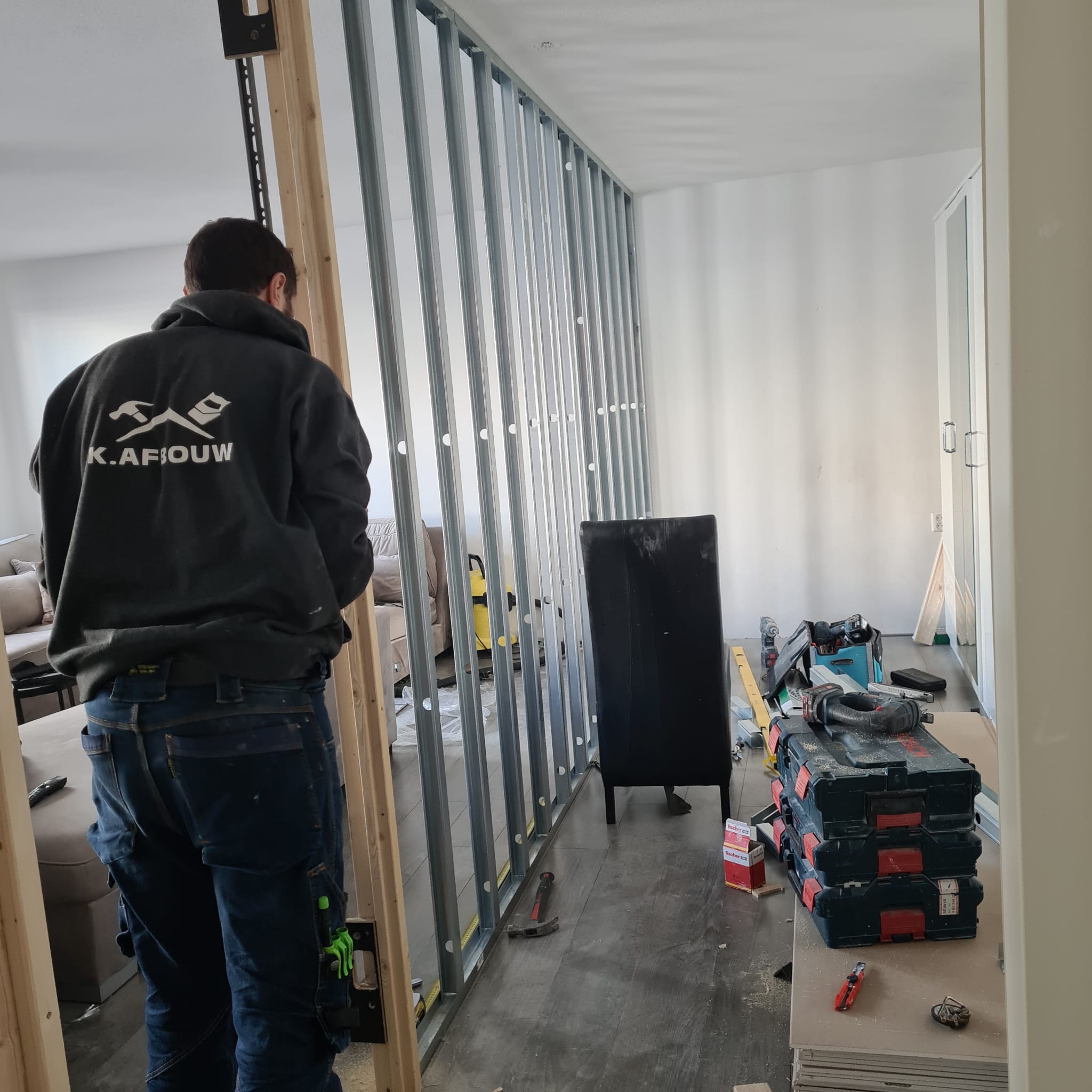 K Afbouw is gespecialiseerd in maatwerk binnenafbouw, zoals cinewalls, wanden, deuren, wandpanelen, renovaties en kozijnen. Wij werken voor zowel particulieren als bedrijven in Amsterdam, Haarlem, Hoofddorp, Almere en omgeving.